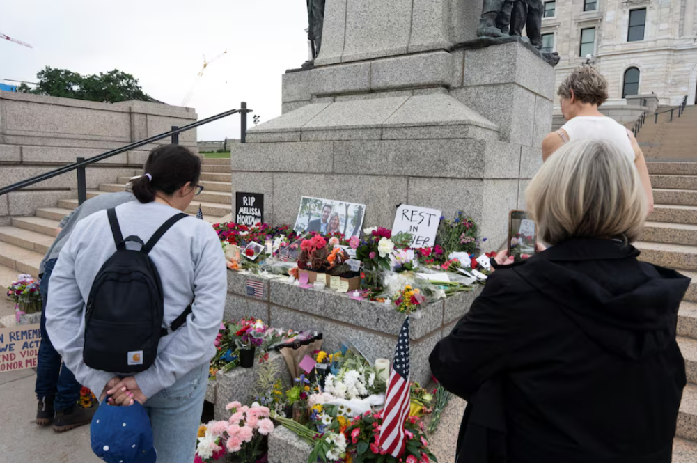 People visit a memorial outside the Minnesota State Capitol in honor of Democratic state assemblywoman Melissa Hortman and her husband Mark, after a gunman killed them, in St. Paul, Minnesota, June 15, 2025. REUTERS