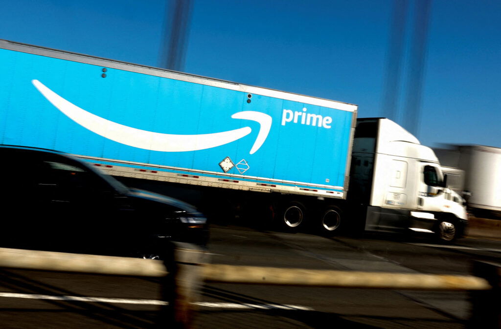An Amazon Prime truck is pictured as it crosses the George Washington Bridge on Interstate Route 95 during Amazon’s two-day “Prime Early Access Sale” shopping event for Amazon members in New York City, New York, U.S., October 11, 2022. REUTERS/Mike Segar/File Photo