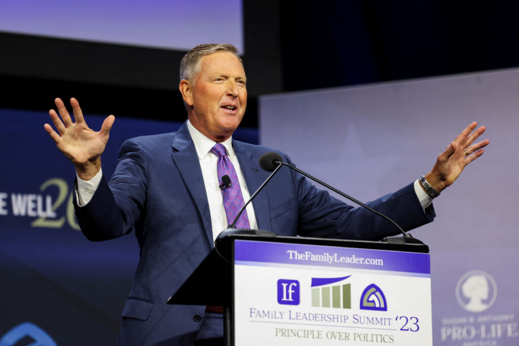 Bob Vander Plaats, President and CEO of The Family Leader, speaks during the Family Leadership Summit at the Iowa Events Center in Des Moines, Iowa, U.S., July 14, 2023.