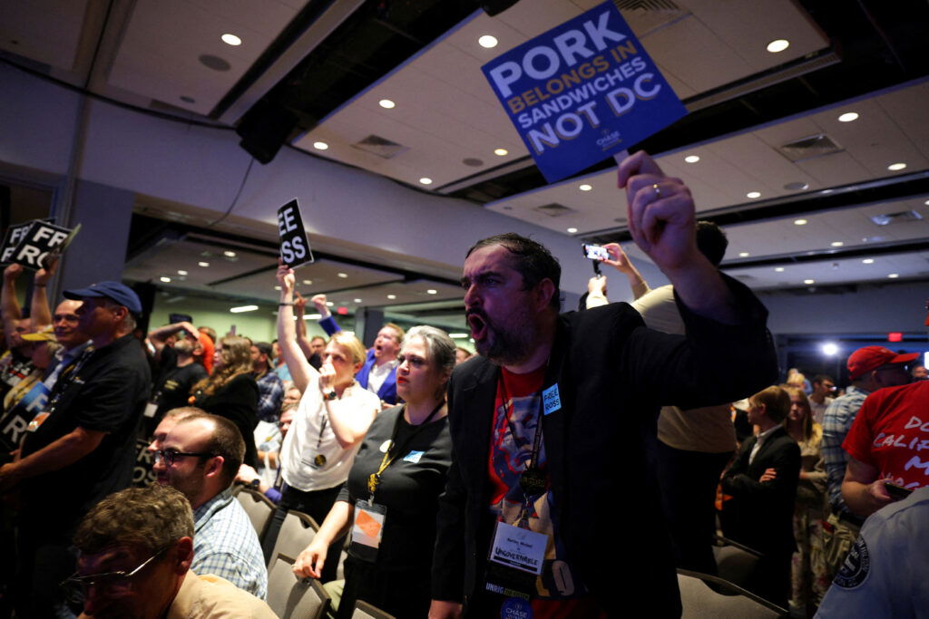 Supporters of Republican presidential candidate Donald Trump attend the Libertarian Party’s national convention in Washington, D.C, May 25, 2024.
