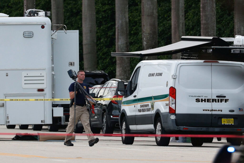 A law enforcement officer walks after reports of shots fired outside Republican presidential nominee and former President Donald Trump’s Trump International Golf Course in West Palm Beach, Florida, Sept. 15, 2024.