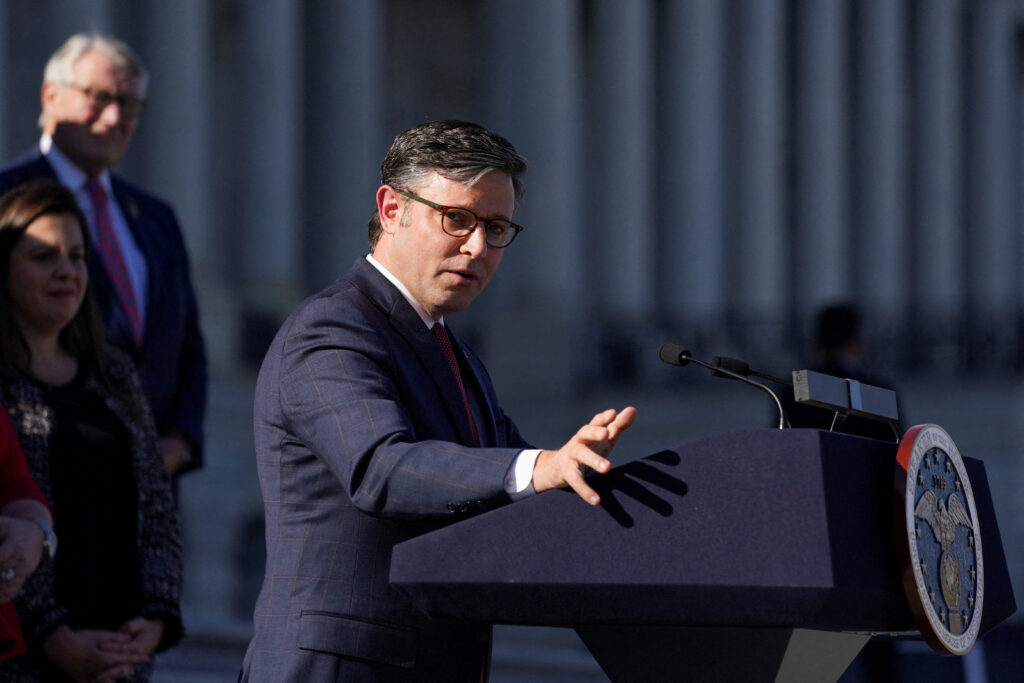 Newly elected Speaker of the House Mike Johnson (R-LA) delivers remarks on the outer steps of the House of Representatives after he was elected to be the new Speaker at the U.S. Capitol in Washington, U.S., October 25, 2023.