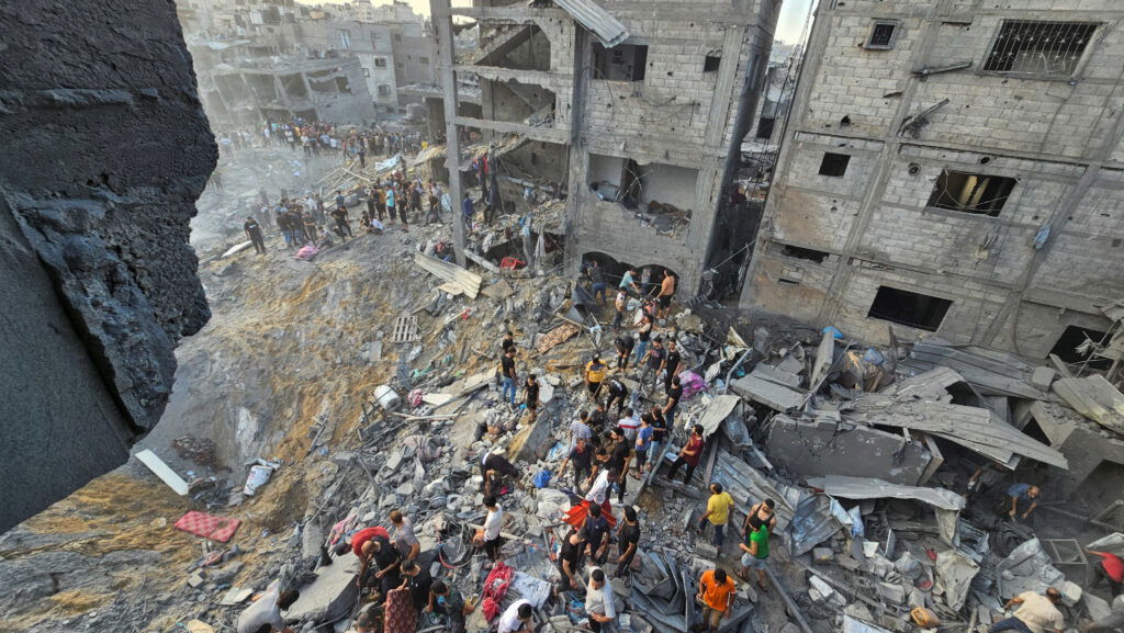 Palestinians search for casualties at the site of Israeli strikes on houses in Jabalia refugee camp in the northern Gaza Strip, October 31, 2023.
