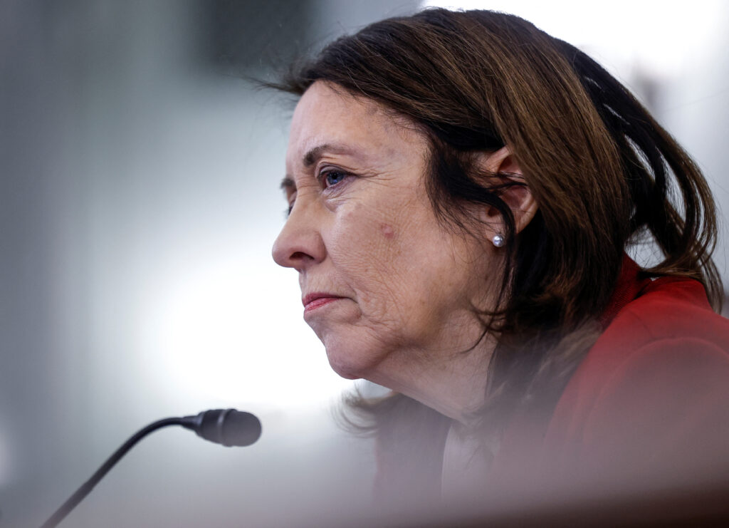 U.S. Senator Maria Cantwell (D-WA) listens during a Senate Commerce, Science and Transportation Committee hearing titled “Improving Rail Safety in Response to the East Palestine Derailment” in Washington, U.S., March 22, 2023.