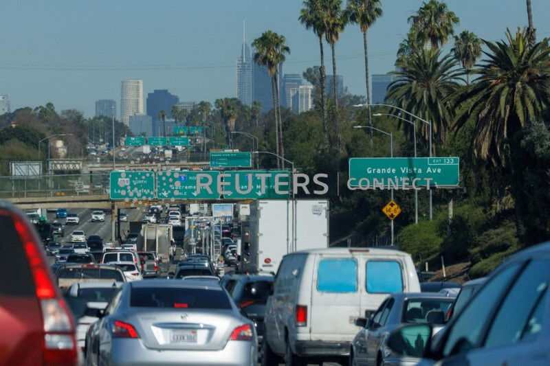 Cars ride in traffic along the I5 freeway is shown in Los Angeles, California, U.S., July 12, 2023. REUTERS/Mike Blake/File Photo