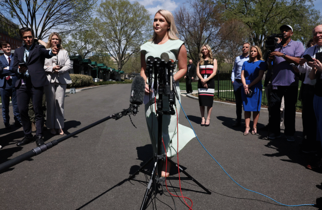 White House Press Secretary Karoline Leavitt speaks to members of the news media at the White House in Washington, D.C. on March 31, 2025.