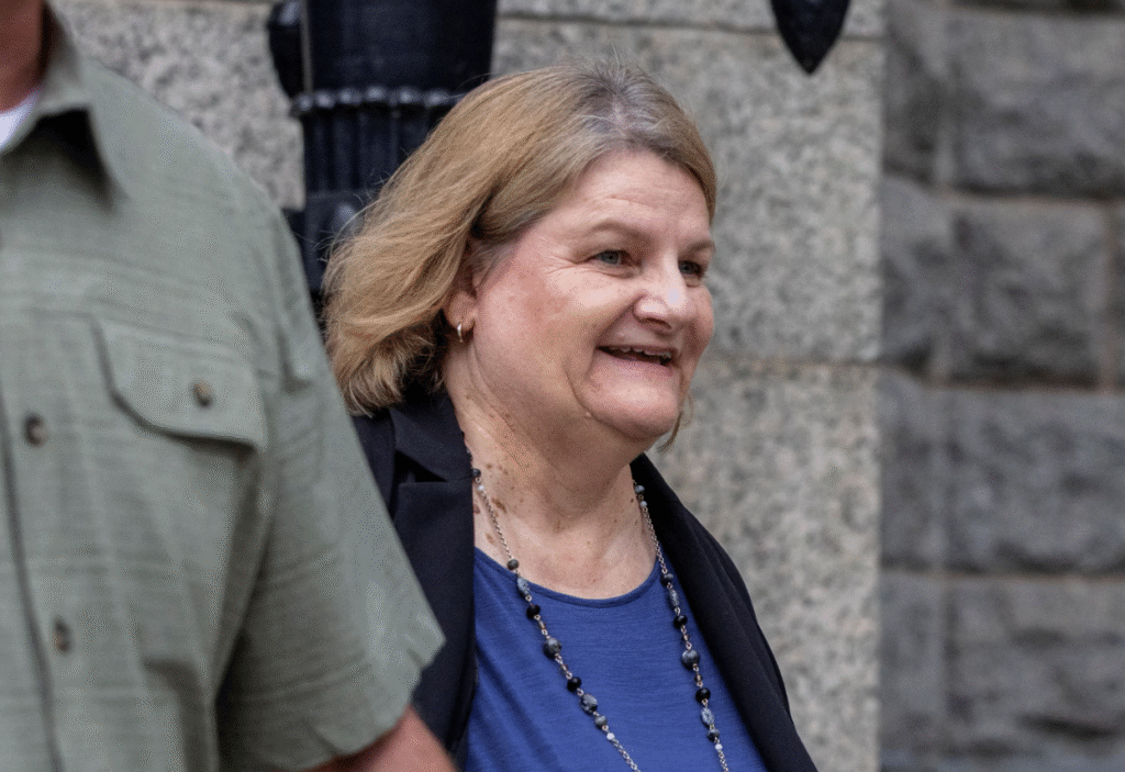 Milwaukee County Judge Hannah Dugan, charged with obstructing an immigration arrest, leaves after appearing in court, in Milwaukee, Wisconsin, May 15, 2025.