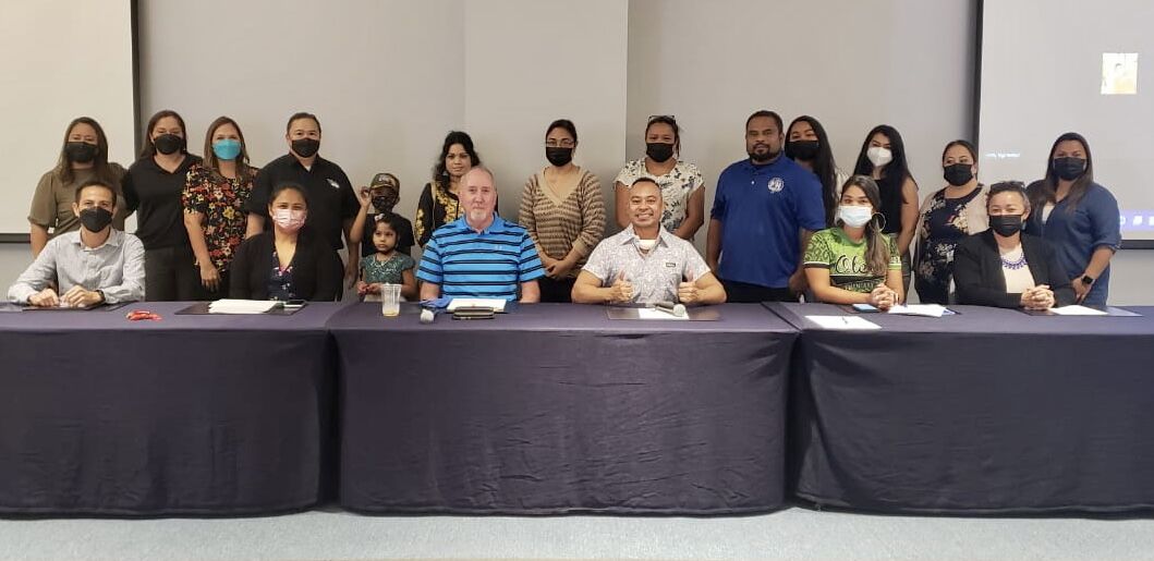 The Parent Advisory Council, the main organization of all public school PTSAs that serves as an advisory council to the Office of the Commissioner of Education, elected on Friday evening its new set of officers for 2022: John Oliver Gonzales, president; Dr. Rita H. Inos Jr. Sr. High School Counselor Elvira Mesngon, vice president; Oleai Elementary School Vice Principal Alisa Pangelinan, secretary; and Kiki Igitol, treasurer. Gonzales succeeds IT&E Executive Director of Customer Relations Rob Harrell. The election was facilitated by Commissioner of Education Dr. Alfred B. Ada, through Liela Yumul, interim family and community engagement program manager. Also in photo are PSS Special Education Director Donna Flores, Human Resources Officer Lucretia Deleon Guerrero, Student and Support Services Senior Director Dr. Yvonne Pangelinan, and Rep. Leila Staffler.
