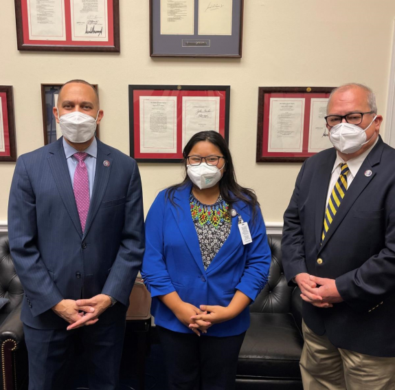 Ms. Jemalynn Iguel has begun an internship with U.S. Congressman Hakeem Jeffries, chair of the House Democratic Caucus. Ms. Iguel dropped in to say hello when U.S. Congressman Gregorio Kilili Camacho Sablan of the CNMI met with Chair Jeffries on Monday. Jemalynn was born and raised on Saipan and is currently pursuing a degree in nursing at Northern Marianas College. She is passionate about environmental issues and educational reform, and looks forward to gaining a better understanding of federal policies and programs. She also hopes her opportunity in Washington will inspire more Marianas youth to pursue careers in public service. The internship is sponsored by the Asian Pacific American Institute for Congressional Studies. Welcome to Congress, Jemalynn!