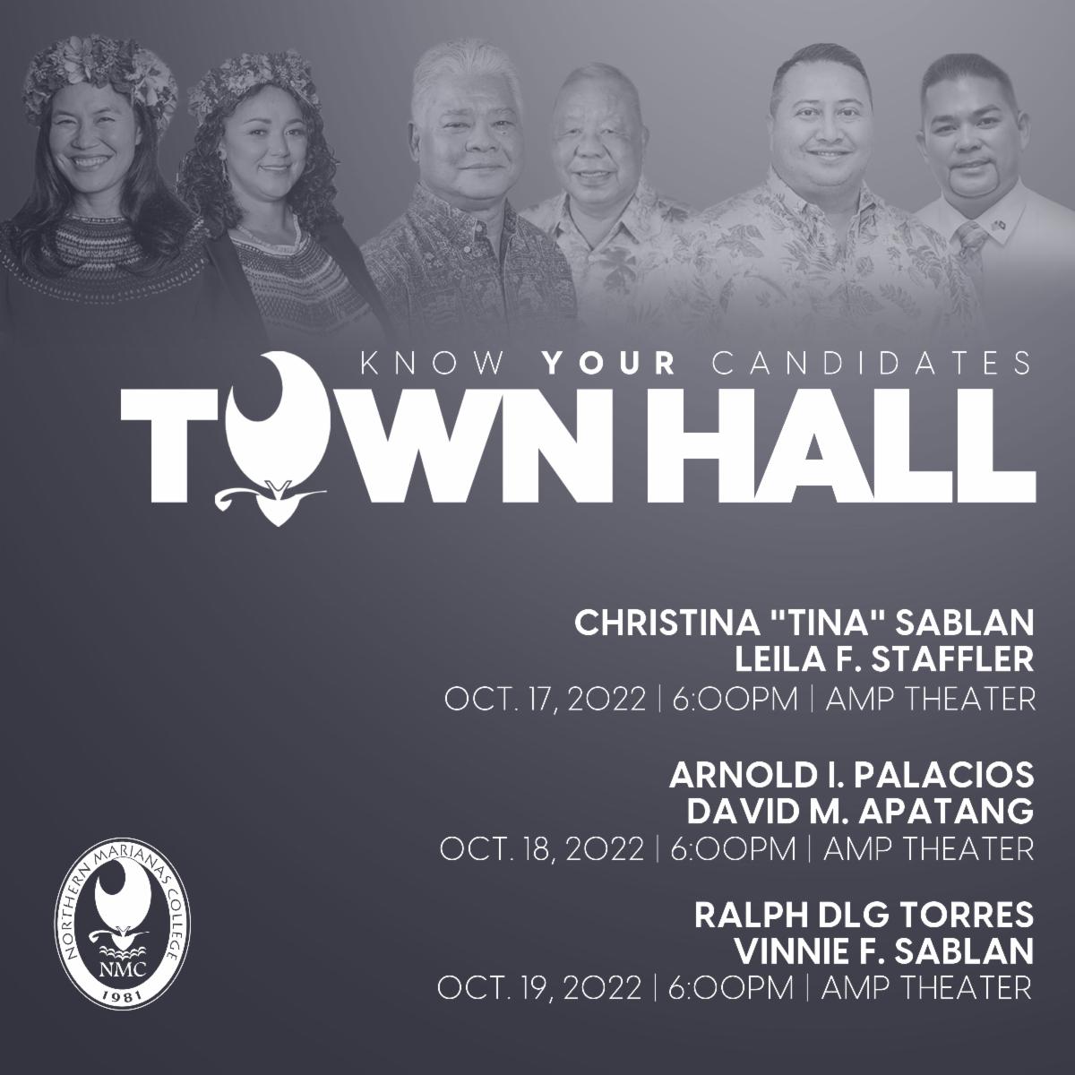 (NMC) — The Associated Students of Northern Marianas College or ASNMC will host three town hall meetings to ask the candidates for governor and lt. governor about issues relating to the economy, environment, healthcare, workforce development, and education.