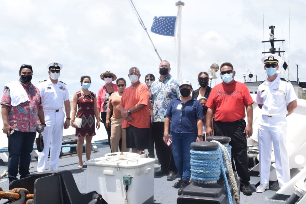 Speaker Edmund S. Villagomez, Rep. Tina Sablan and other lawmakers join National Oceanic and Atmospheric Administration officials aboard the NOAA ship, Rainier, which docked at the Port of Saipan on Friday.