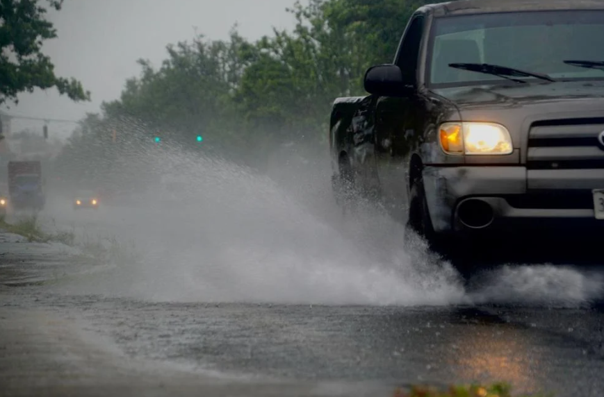 Cars drive through pools of rain that had formed along Route 1 in Hagåtña on Friday, Oct. 13, 2023. Jonah Benavente/The Guam Daily Post