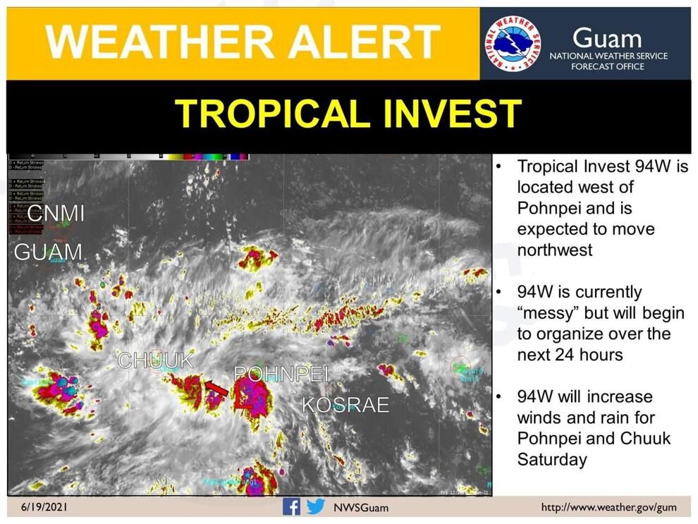 “Invest Area 94W” is currently unorganized with a broad circulation located near 6 degrees north latitude and 153 degrees east longitude, according to a press release from Guam Homeland Security/Office of Civil Defense.