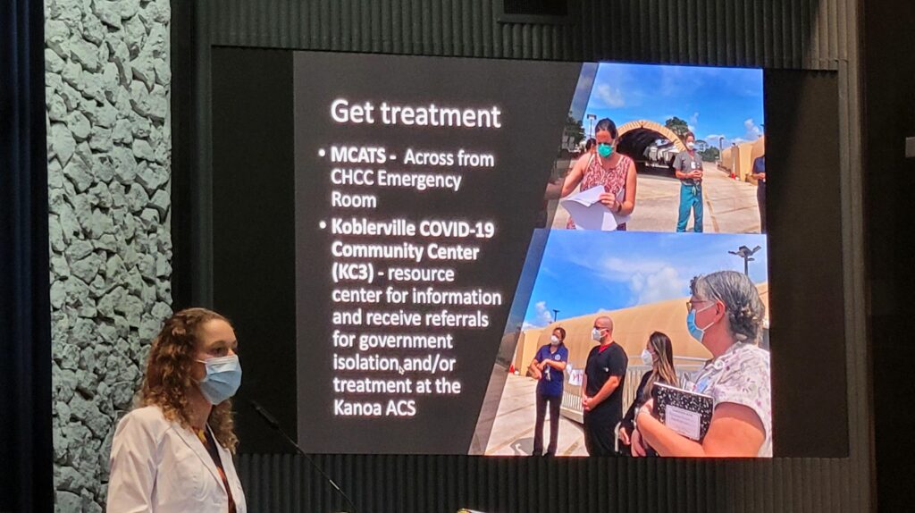 KC3 serves as a resource center for information and receives referrals for government isolation and/or treatment at the alternate care site at Kanoa Resort.