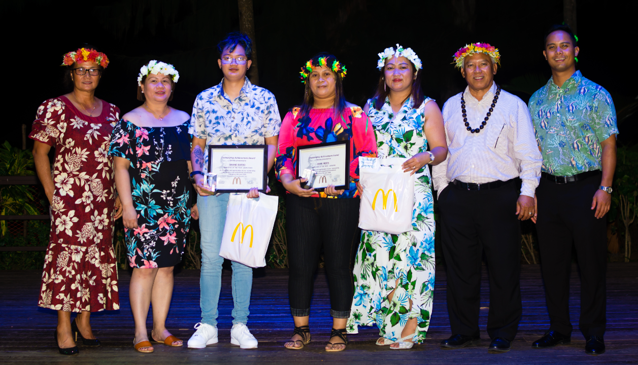 Shane Barro and Rinie Fiden were named the 2020 McDonald’s Employees of the Year during the company’s Annual Employee Appreciation Party on Dec. 23, 2020 at Fiesta Resort. “Shane and Rinie are valuable assets to the company. Congratulations, your McDonald’s family is very proud of you!” From left,  Marcia E. Ayuyu, McDonald’s owner/operator, Jocelyn R. Asistores, general manager, Middle Road store; Shane Barro, 2020 Employee of the Year, McDonald’s Middle Road branch; Rinie Fiden, 2020 Employee of the Year, McDonald’s Garapan branch; Ruthzel L. Perez, general manager, Garapan branch; Jose C. Ayuyu, president/CEO of McDonald’s Guam and Saipan; and Joe E. Ayuyu Jr., vice president, McDonald’s Guam and Saipan.