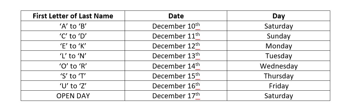 Benefits will be issued according to the first letter of the primary contact’s last name based on the following schedule: