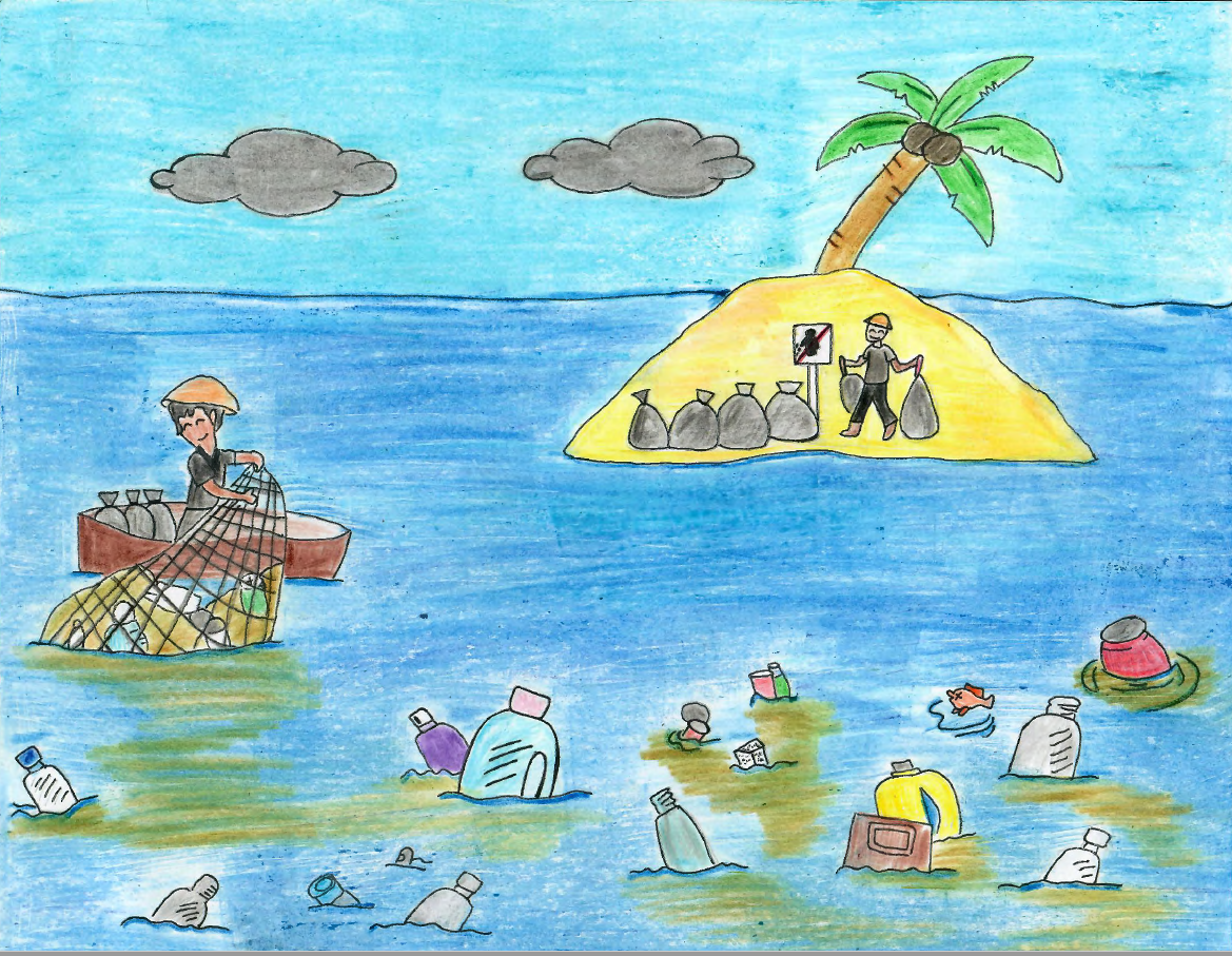 Jomil Garcia from Palau High School was named overall winner. Besides receiving a cash prize of $100 and a free copy of the Calendar, Jomil’s drawing will be featured on the cover page of the “2021 Saving Our Oceans from Plastic Pollution” Arts and Tides Calendar. At the same time, her art will be displayed on two road signs: one across from Palau High School and the other in Airai, near Bem Ermii.