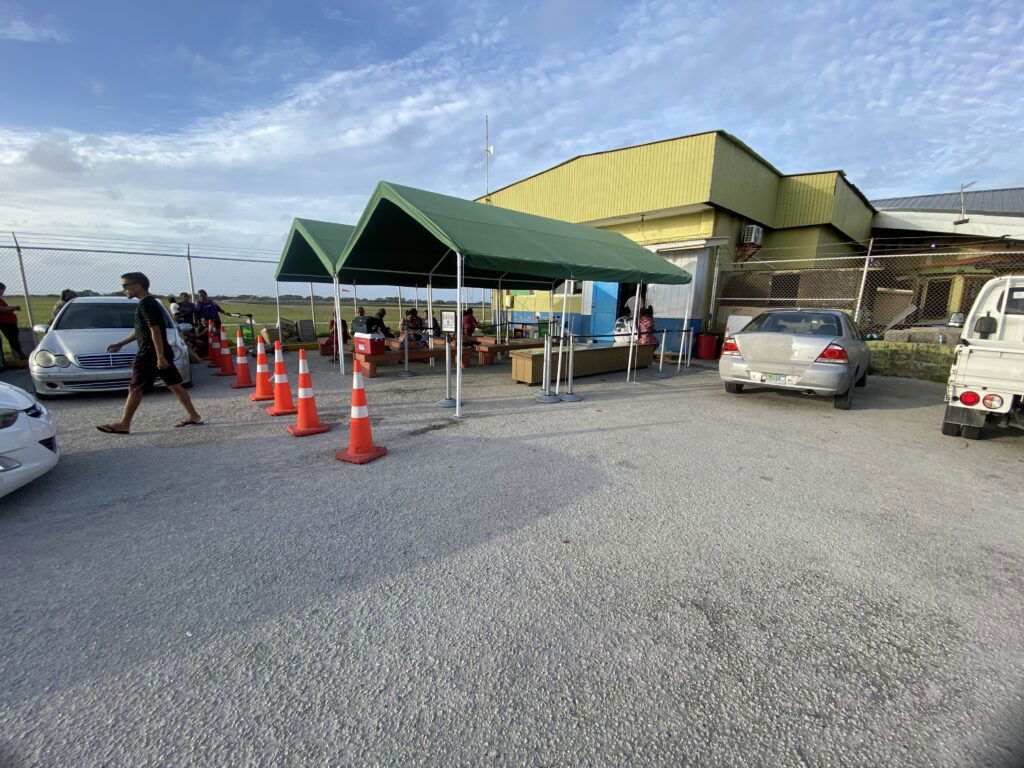 Air Marshall Islands set up a temporary passenger check-in using its cargo facility next to the main terminal at Amata Kabua International Airport in Majuro after the terminal was declared unsafe for use in January.