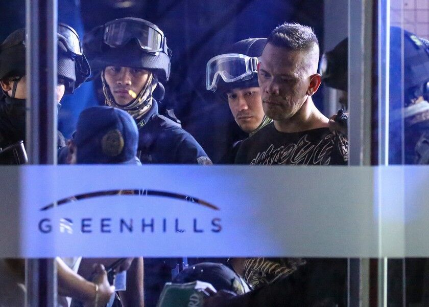 The 10-hour hostage crisis ended peacefully when Paray walked out of the V-Mall in Manila’s upscale Greenhills district and freed his captives. Afterward, he faced TV cameras and journalists for several minutes and angrily voiced his grievances against his former superiors before police swarmed in and subdued him.