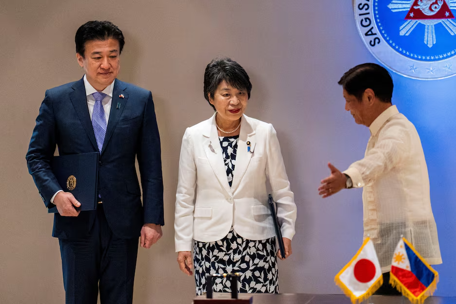 MANILA (Reuters) — The Philippines hailed an “unprecedented” high in defense ties with Japan after the signing on Monday of a landmark military pact allowing deployment of forces on each other’s soil in the face of China’s increasingly assertive stance in the region.