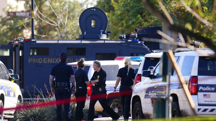 PHOENIX (Reuters) — A man fatally shot a woman inside a Phoenix home on Friday, then opened fire on police who were called to the scene, wounding nine officers in a gunfight that ended with the suspect shot dead, city police said.