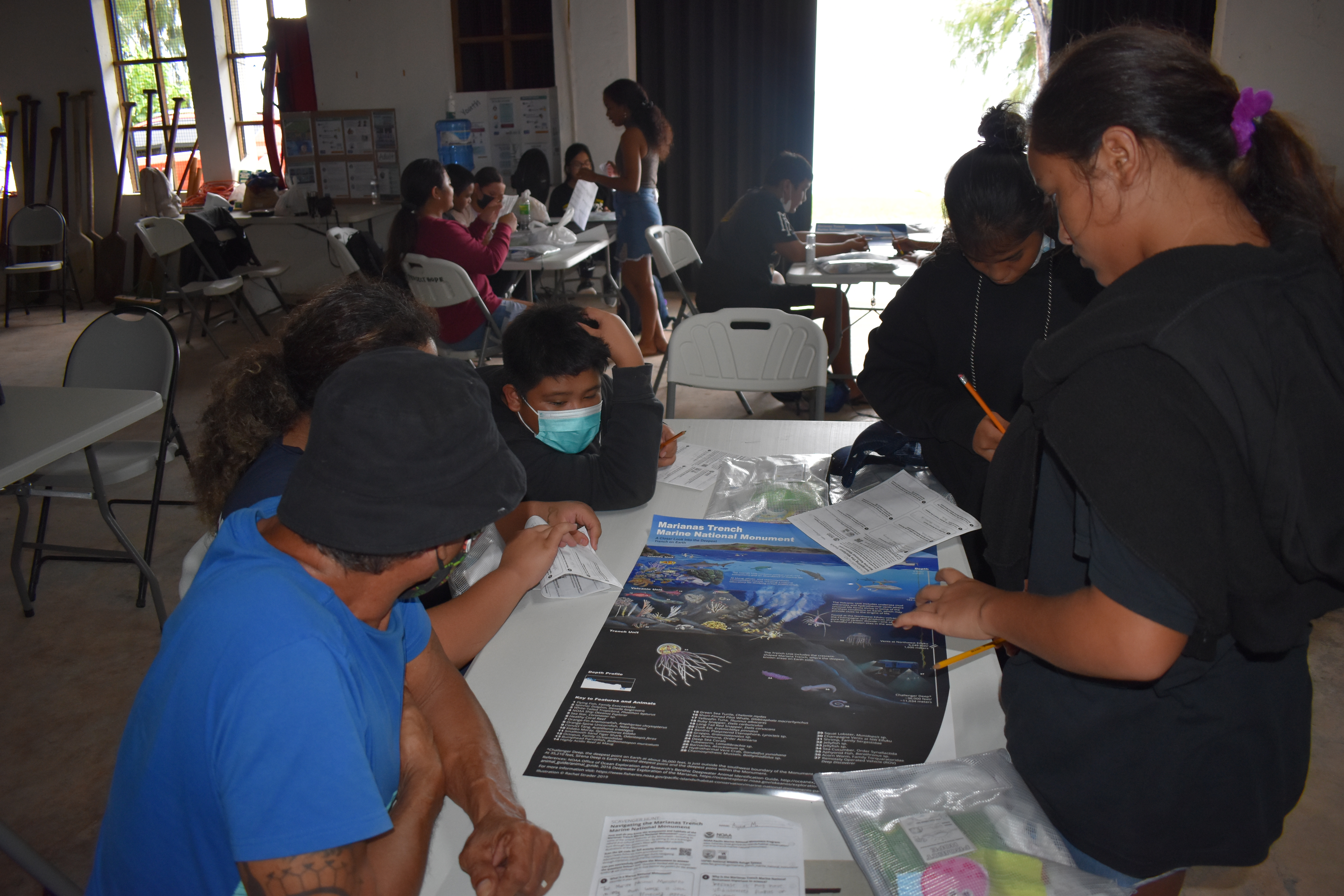 The weekly ocean science learning sessions also combine traditional cultural methods and STEM principles to promote ocean conservation stewardship; local elders with a lifetime of ocean expertise participate in ocean science activities right along with CNMI 6th graders.