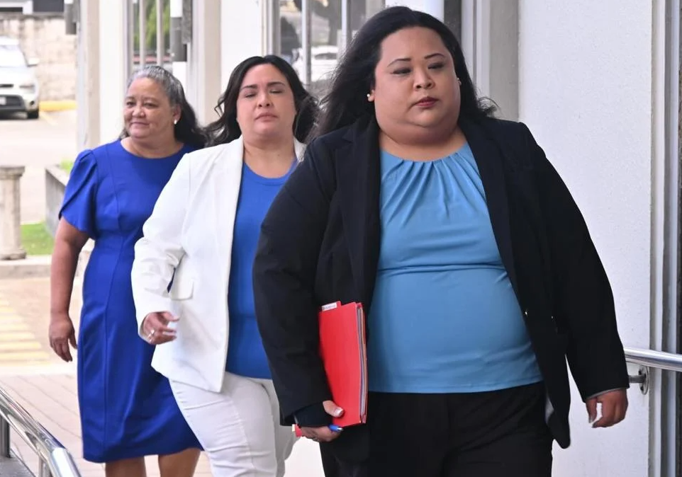 From left, Tina Sanchez, Charissa Tenorio and Tenorio’s attorney, Kristine Borja enter the District Court of Guam in Anigua on Thursday for an arraignment hearing.