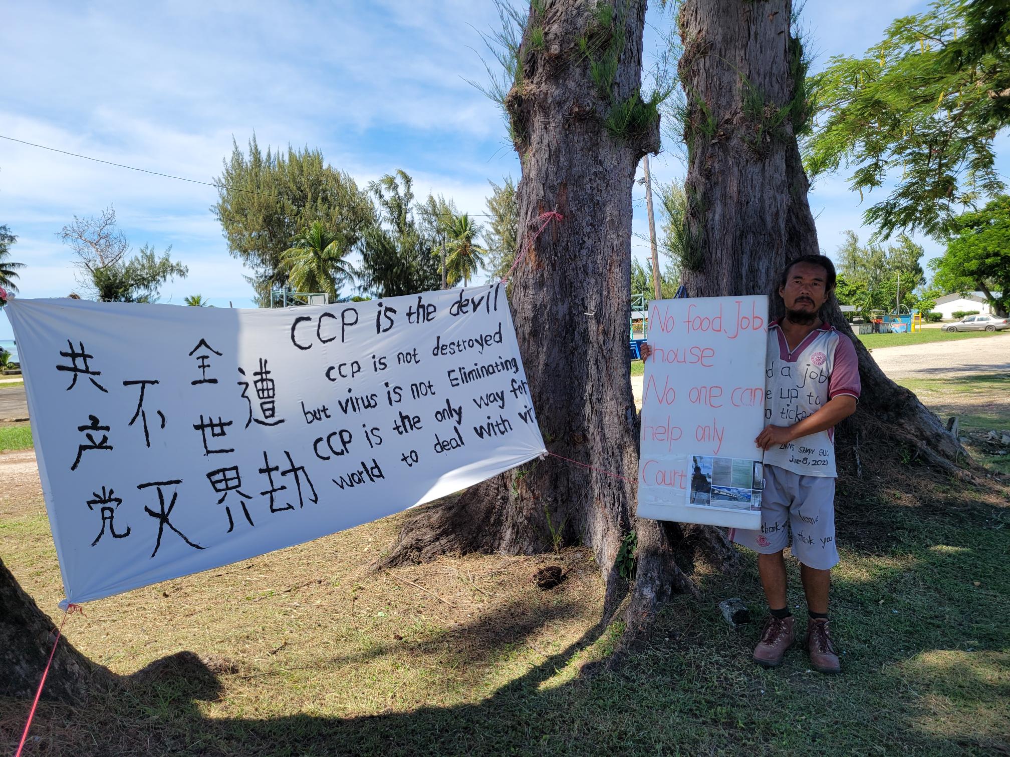 Zhang, who said he is jobless and homeless, is a citizen of the People’s Republic of China, and holds a daily protest against the Chinese Communist Party at the Civic Center across from the judicial building in Susupe.