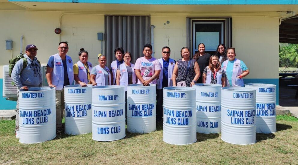 On March 14, 2023, in line with its primary service cause, which is protecting and taking care of the environment, the Saipan Beacon Lions Club donated eight trash bins to Francisco Mendiola Sablan Middle School in San Antonio, Saipan. These recycled drums were donated by generous businesses and were prepped and painted by the club members with the help of other volunteers. In providing these trash bins, the club aims to encourage students to help take care of the environment with a simple act of disposing of their trash properly, not only in the school premises but wherever they are. SBLC President Lion Marcelo Masilungan and seven other club members presented the trash bins to FMS Principal Cherlyn Osung who expressed her appreciation for the generosity and thoughtfulness of the club. “Thank you — this is a huge help to maintain our clean campus,” she said. Photo shows Saipan Beacon Lions Club members with FMS Middle School officials.