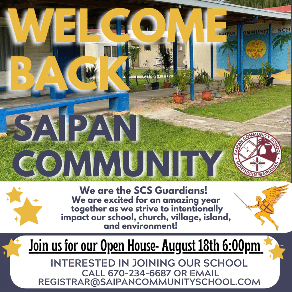 (SCS) — Saipan Community School is hosting its annual open house and parent orientation night on Aug. 18, 2022 at 6 p.m. Parents and students are encouraged to attend as well as members of the community interested in learning more about our school.