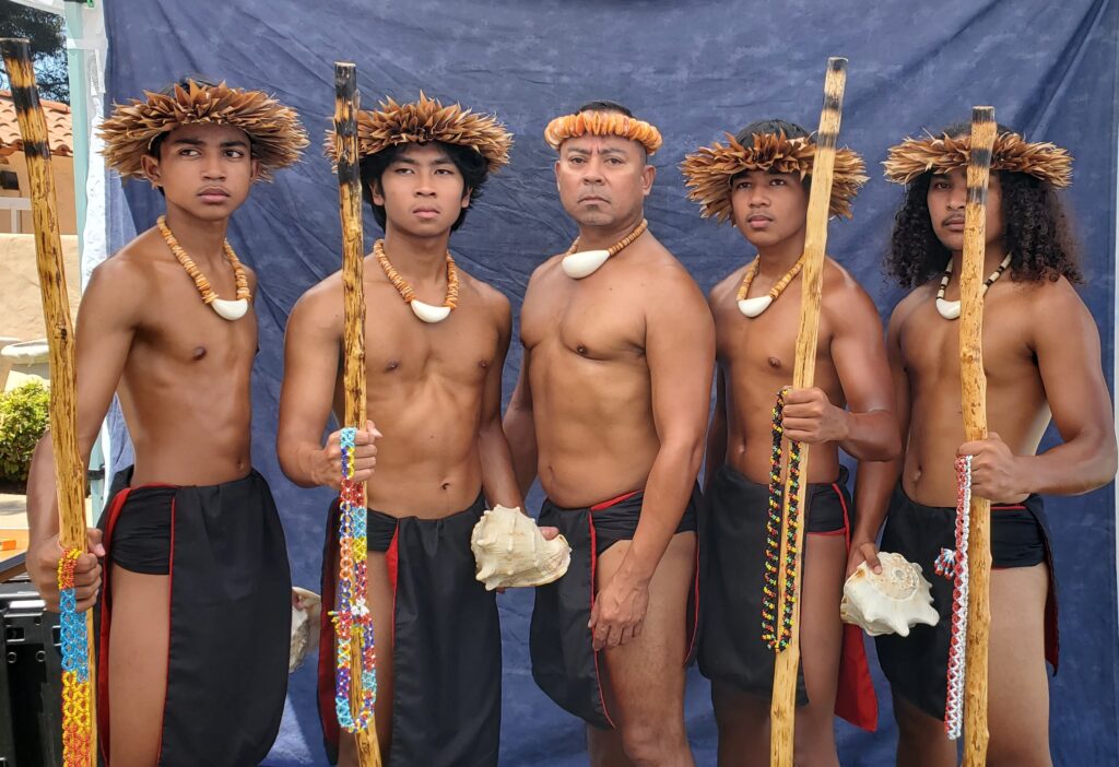 House of Chamorros CNMI liaison member John Oliver Gonzalez, center, joins his I Man Urritao Iya Gani dance group during a photo session right before performing at the Hafa Adai Festival in San Diego.