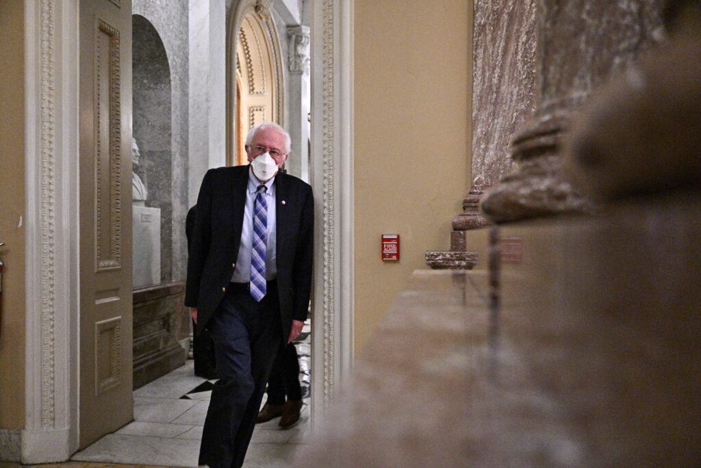 U.S. Sen. Bernie Sanders, I-Vt., leaves after voting on an amendment to the continuing resolution that averted a shutdown of the federal government, at the U.S. Capitol in Washington, D.C., Feb. 17, 2022.
