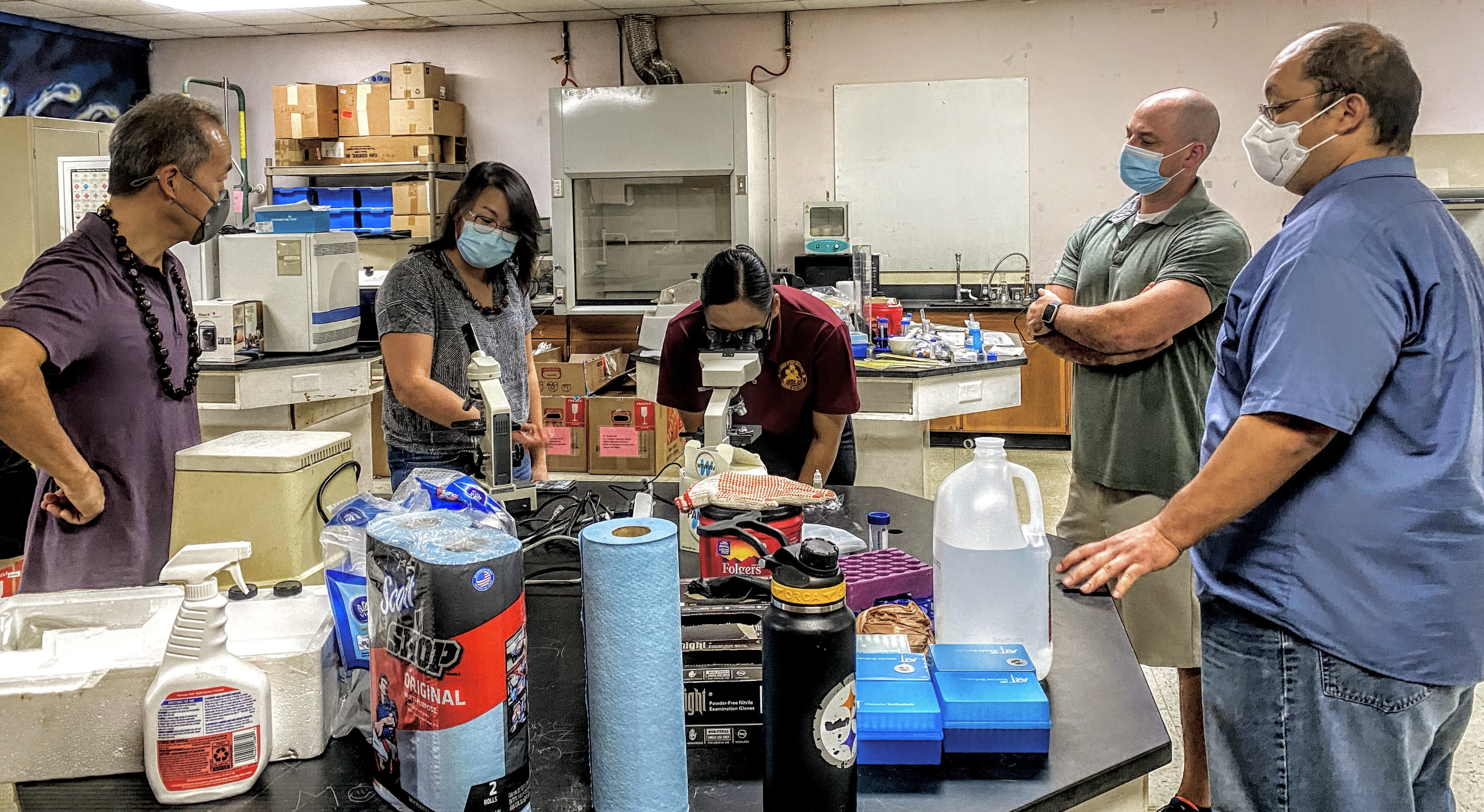 University of Hawaii-Manoa’s Dr. George Hui, Dr. Alanna Tseng, and PhD student Annessa Golshan, virtually in her case, are providing a five-day hands-on science laboratory training-support to Kagman High School teachers Jolene Aguon and Nicholas Brennfleck, and Tinian Jr. Sr. High School’s Dr. Conrad Kiyoshi. The Public School System’s science coordinator, Asapmar Ogumoro, coordinated the program with Annette P. Sablan who was trained in biomedical research. Dr. George Hui also provides research training and mentoring to underrepresented minority and disadvantaged high school students in Hawaii and the Pacific through the Pacific STEP-UP Program.
