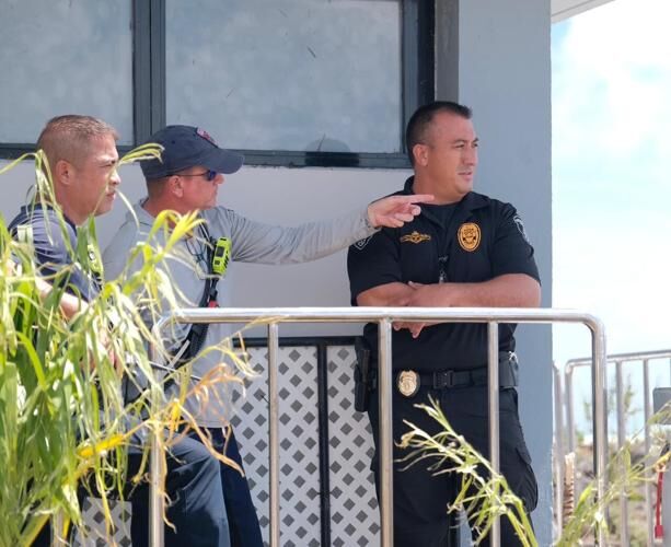 Members of the Guam Fire Department rescue team and Port Authority of Guam Police were among the agencies helping search for a missing swimmer at the Hågat Marina on Friday, May 26, 2023.