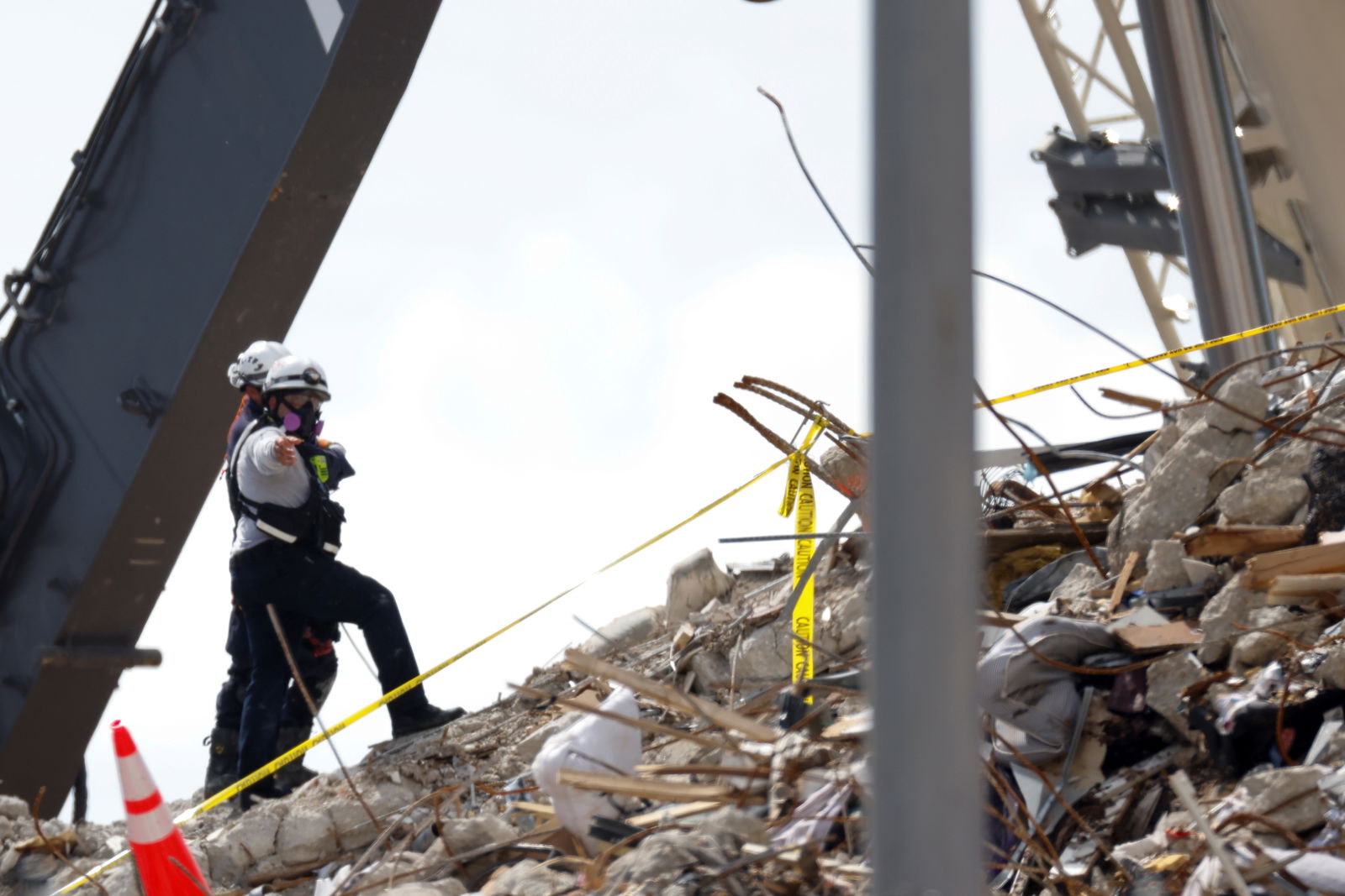 Rescue personnel continue the search and rescue operation for survivors at the site of a partially collapsed residential building in Surfside, Florida on July 2, 2021.