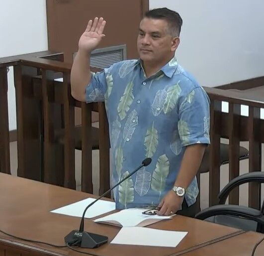 Allen Perez, a nominee to the Commonwealth Utilities Corporation board of directors, is sworn in during the public hearing conducted by the Senate Committee on Executive Appointments and Government Investigations on Wednesday last week in the Senate chamber.