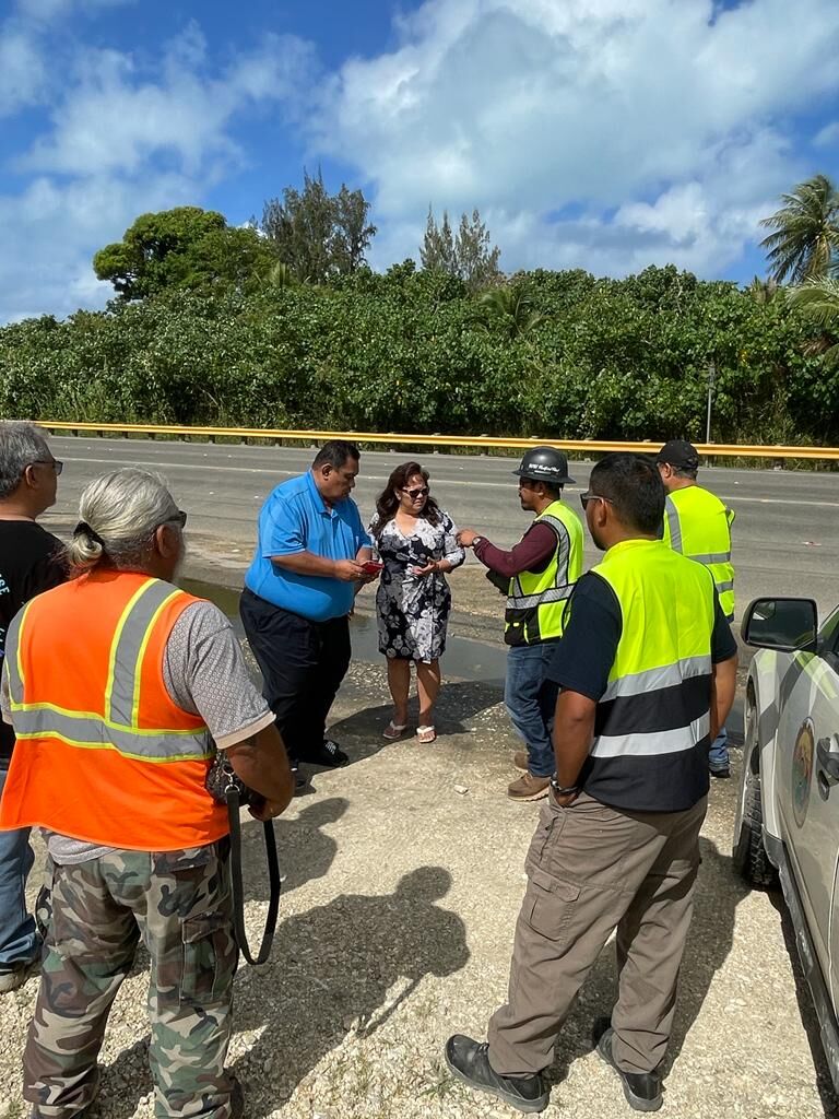 SENATOR Celina R. Babauta on Friday met with officials of the Department of Public Works- Technical Division Services and Commonwealth Utilities Corp. personnel on Middle Road in Tanapag to inspect a road hazard there.