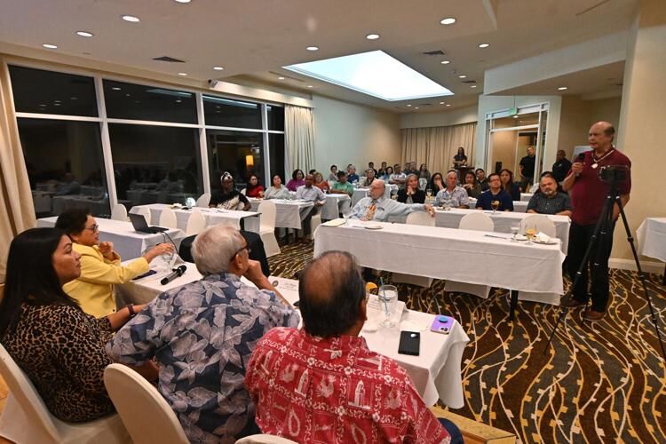 Dr. John Taitano asks a question during a meeting for medical professionals about the proposed Guam medical complex held Monday, Nov. 27, 2023, at the Hilton Guam Resort & Spa in Tumon.