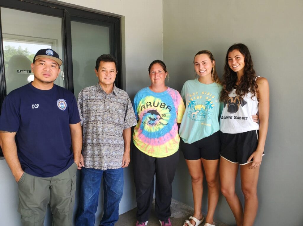 From left, Dog Control Program Manager Martin Pangelinan, Special Assistant to the Mayor Henry Hofschneider, Dr. Kris Anderson DVM, Grace and Aria Keilbach of Boonie Babies Saipan at the Saipan Mayor’s Office multi-functional animal shelter in As Perdido on Thursday.