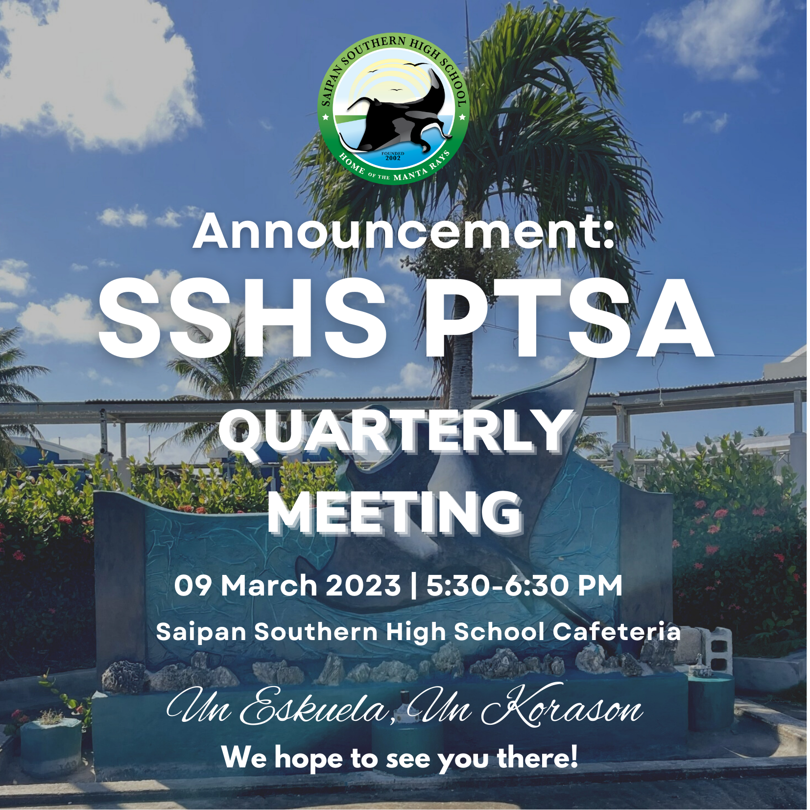 SAIPAN Southern High School will hold its PTSA quarterly meeting on March 9, Thursday, from 5:30 p.m. to 6:30 p.m. in the cafeteria.
