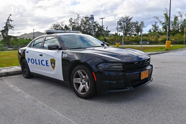 A police cruiser is parked in front of the Guam Police Department central precinct Tuesday, Jan. 2, 2024, in Sinajana.