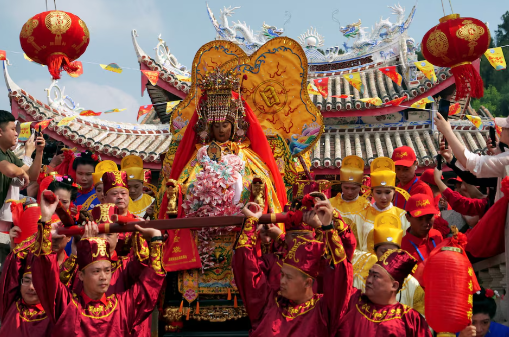 MEIZHOU, China (Reuters) — Over a thousand Taiwanese pilgrims flocked to southeast China’s Fujian province this week for a religious festival, a rare instance of cross-strait cultural exchanges that threatens to be overshadowed by political tensions.