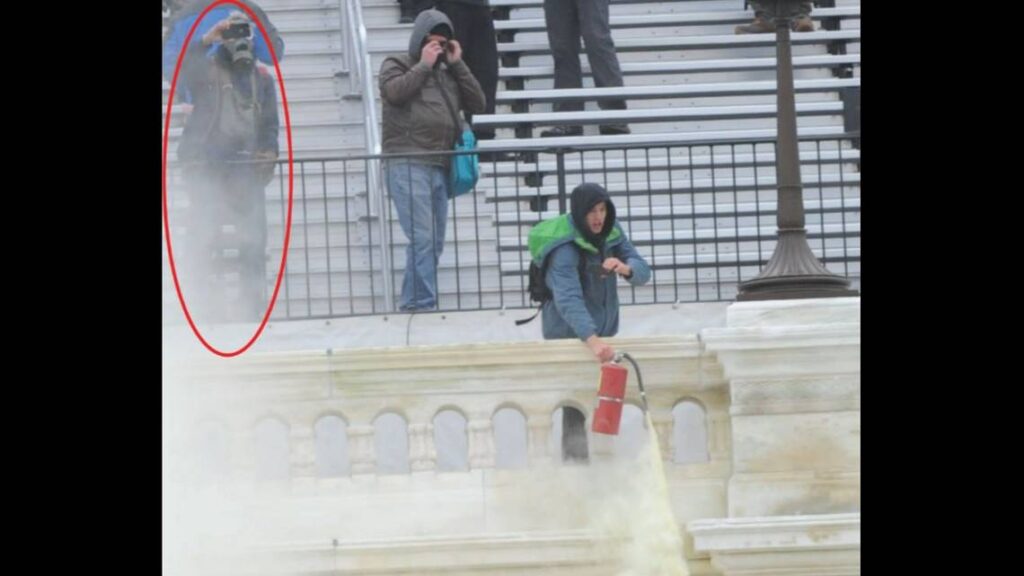 The FBI affidavit includes photos from inside the Capitol. Wilson was wearing a gas mask in some photos.