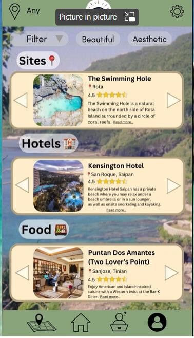 A screenshot from the winning app of Sofia Del Rosario and Adriel Lenteja in the Marianas Tourism Education Council Tourism App Challenge awarded in February 2023