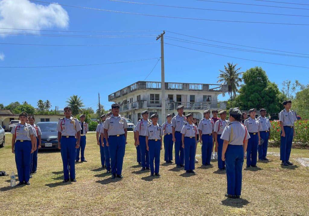 TINIAN — On Monday, May 30, 2022, Memorial Day, the Stallion Battalion participated in the Memorial Day ceremony at the Tinian Veterans Park. The Stallion Battalion arranged a color guard team for the ceremony, and many cadets stood in formation as the ceremony took place. It is a tradition for the cadets to pay tribute to the fallen. Memorial Day is a day for fellow family members and veterans to visit their fallen loved ones who served in the U.S military.