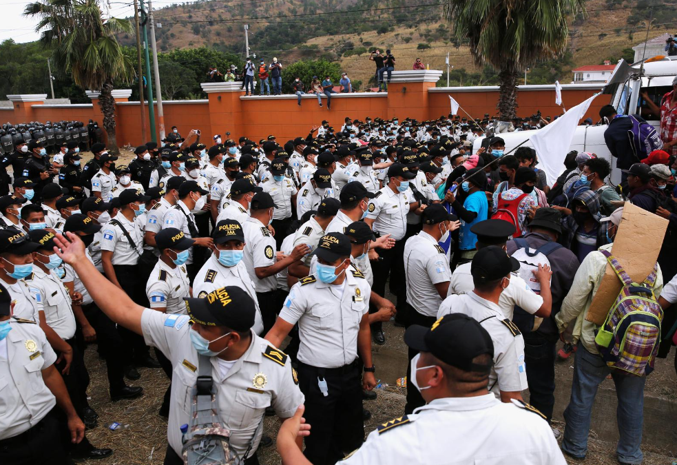 In the mid-January confrontation in Guatemala, the Reuters photographer and other witnesses saw a wall of security forces confront hundreds of migrants, beating some and deploying tear gas. Some migrants threw rocks. Guatemalan immigration authorities reported an unspecified number of injuries.