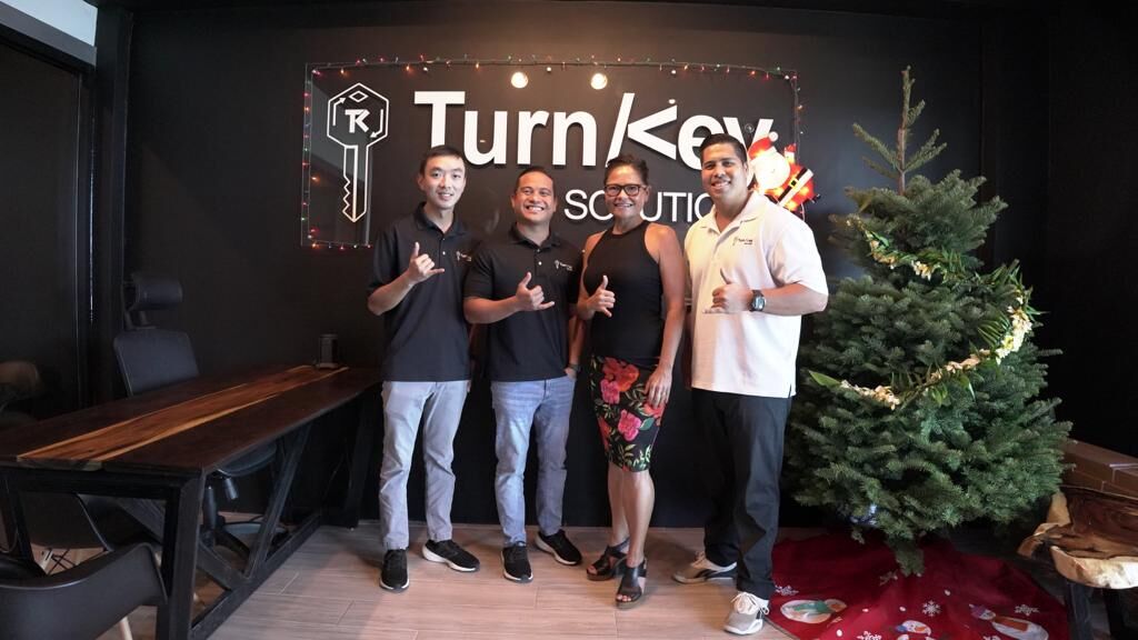 Friends of San Jose Tinian President Kimberlyn King-Hinds, second right, poses with TurnKey Solutions officials.