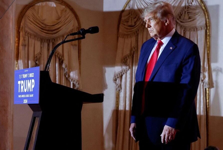 Former President Donald Trump approaches the podium to announce that he will once again run for  president in the 2024 election during an event at his Mar-a-Lago estate in Palm Beach, Florida, Nov. 15, 2022.