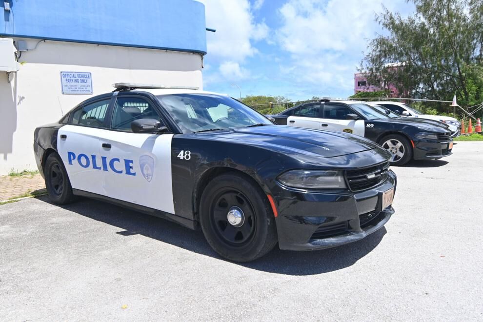 In this file photo taken on June 29, 2022, police cruisers are seen parked outside the Guam Police Department's Sgt. Frankie E. Smith Police Station.