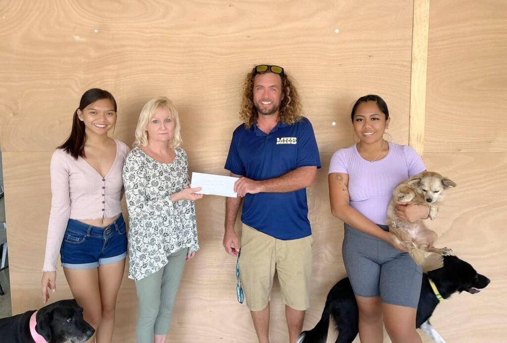 For the third straight, the Wollak Golf Classic has shown its support to Saipan Cares for Animals. This year, the 13th WGC was able to raise $1,019. In the photo is Dan Wollak, second right, handing the donation to Director of Saipan Cares for Animals Beth Pliscou, second left, along with Nayleen Wall and Geraldine De Dios on Wednesday.
